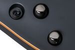 Volume, Tone and a 3-way selector. 26.5" scale length improves string tension on the low B string.