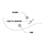 The guitar is equipped with Ibanez IBZ-8 humbuckers in both neck and bridge positions. The pickups are connected to a 3-way switch controlling different combinations, with shared tone and volume controls. All settings use series wiring, which provides maximum output and noise reduction.