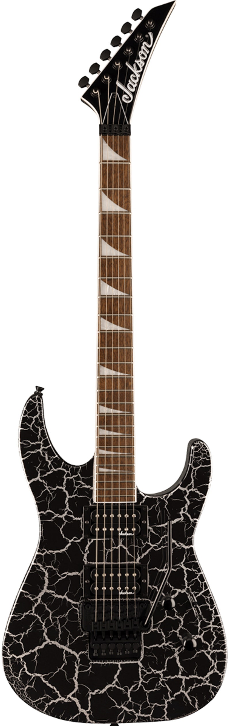 Silver Mercury Crackle -viimeistely tekee tästä kitarasta todellisen katseenvangitsijan. Musta hardware, Jacksonin ikoninen 6-in-line -lapamalli ja sharkfin-upotukset viimeistelevät klassisen metallilookin. Crackle-viimeistely jatkuu myös kaulan takapuolelle, mikä tekee SLX DX:stä ainutlaatuisen tyylikkään kokonaisuuden.
