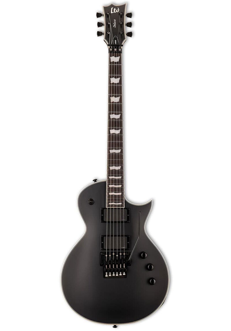 Tuotenumero 1074311LTD EC-1000 FR Black Satin on moderni sähkökitara, jossa on Floyd Rose 1000SE -talla, EMG 81/60 -aktiivimikrofonit, set-thru -rakenne ja rosterinauhat.
