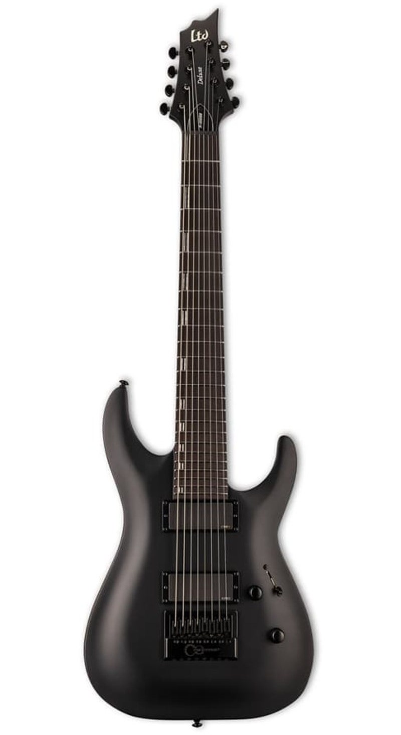 Tuotenumero 1074362LTD H-1008 Baritone EverTune Black Satin tarjoaa 8-kielisen baritonirakenteen, EverTune-tallan ja aktiiviset EMG-mikit moderniin matalavireiseen soittoon.