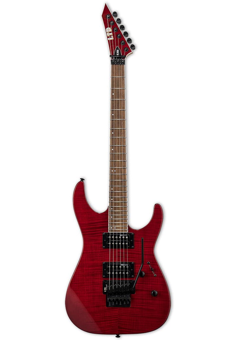 Tuotenumero 1074508LTD M-200FM See Thru Red on monipuolinen ja edullinen sähkökitara rock- ja metallisoittoon, jossa yhdistyvät mahonkirunko, loimuvaahterakansi, LTD by Floyd Rose -tremolo ja ESP Designed LH-150 -humbuckerit.