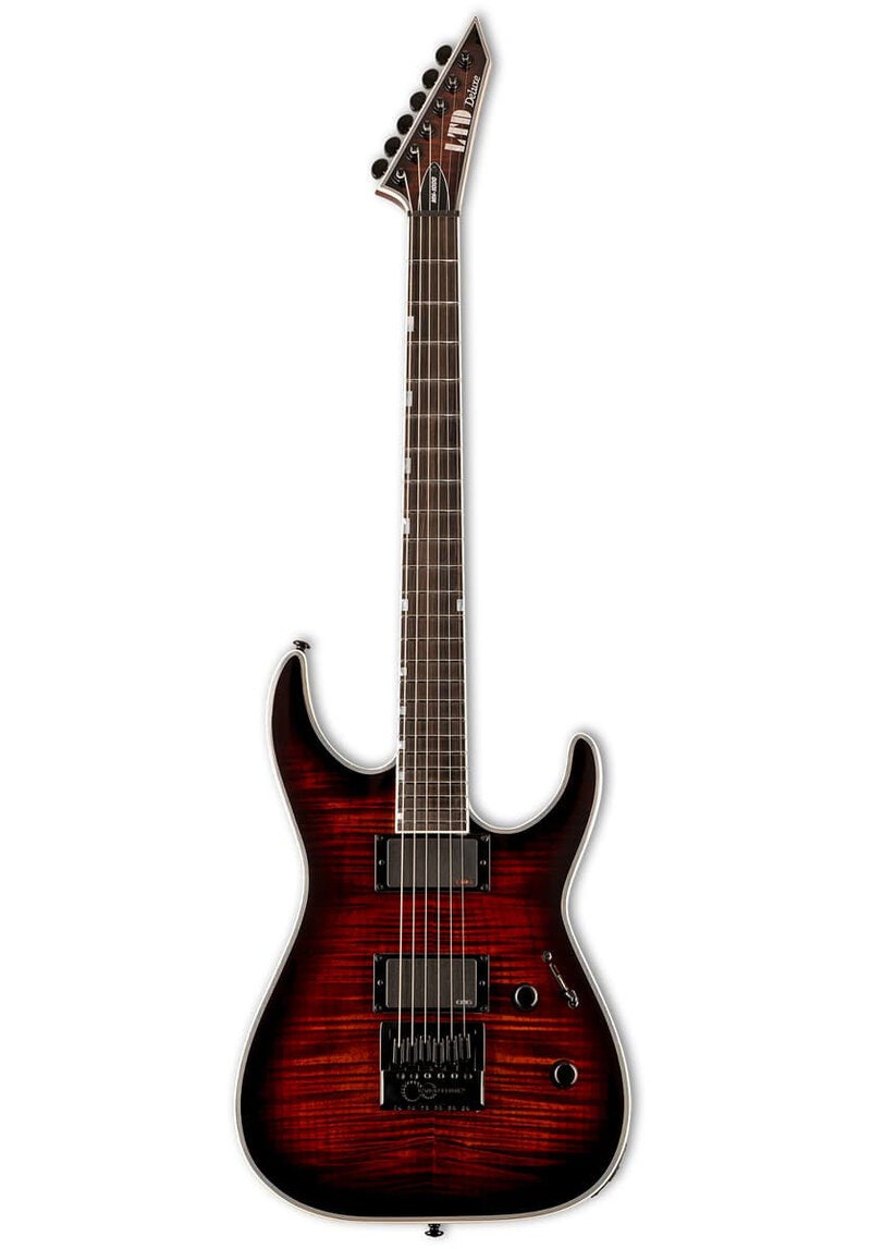 Tuotenumero 1074527LTD MH-1000 EverTune Dark Brown Sunburst on ammattitason sähkökitara, jossa yhdistyvät EverTune-talla, mahonkirunko, loimuvaahterakansi ja EMG-aktiivimikit moderniin rockiin ja metalliin.