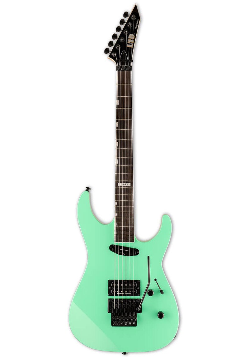 Tuotenumero 1074278LTD Mirage Deluxe ’87 Turquoise on bolt-on -rakenteinen shred-sähkökitara, jossa Seymour Duncan Hot Rail ja Distortion TB-6 -mikrofonit coil split -toiminnolla sekä Floyd Rose 1000 -tremolo tarjoavat moderniin high-gain -soittoon erottuvan, tarkan ja aggressiivisen soundin.