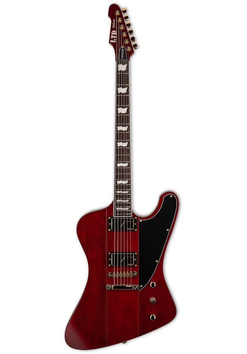 Tuotenumero 1074373LTD Phoenix-1000 See Thru Black Cherry on neck-thru -rakenteinen sähkökitara, jossa on Fishman Fluence Modern -mikitykset, kultainen hardware ja TonePros-talla moderniin rockiin ja metalliin.