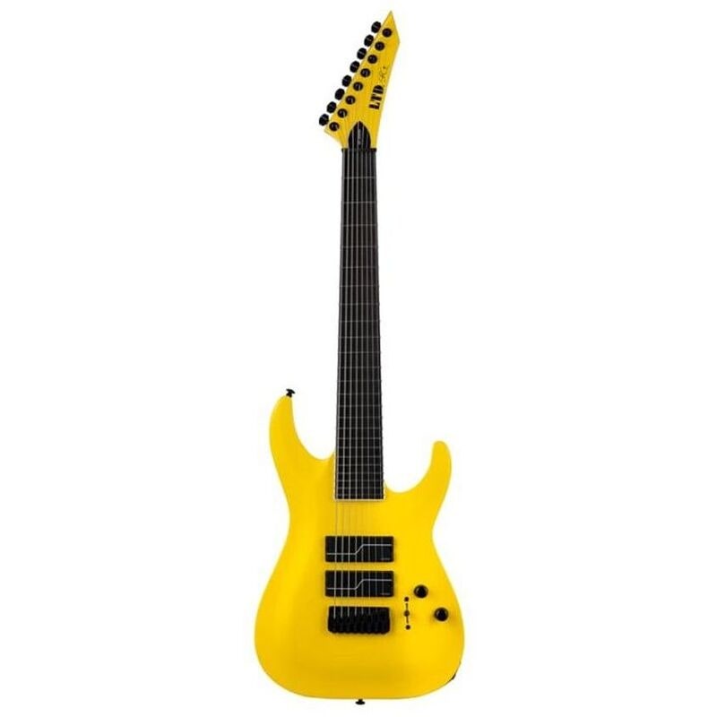 LTD SC-608 Baritone Stephen Carpenter Signature Yellow on kahdeksankielinen baritone-sähkökitara, joka on suunniteltu matalavireiseen ja äärimmäisen tarkkaan moderniin metallisoittoon. Tämä signature-malli heijastaa Stephen Carpenterin tinkimätöntä lähestymistapaa soundiin, virevakautta ja artikulaatiota vaativiin riffirakenteisiin.