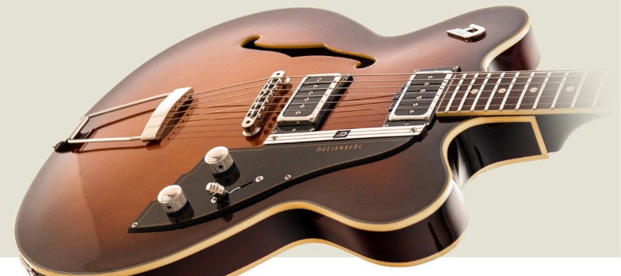 Duesenberg Julia Tremolo Black on kammiollinen sähkökitara, jossa on P90- ja Split/King-mikrofonit, Diamond...