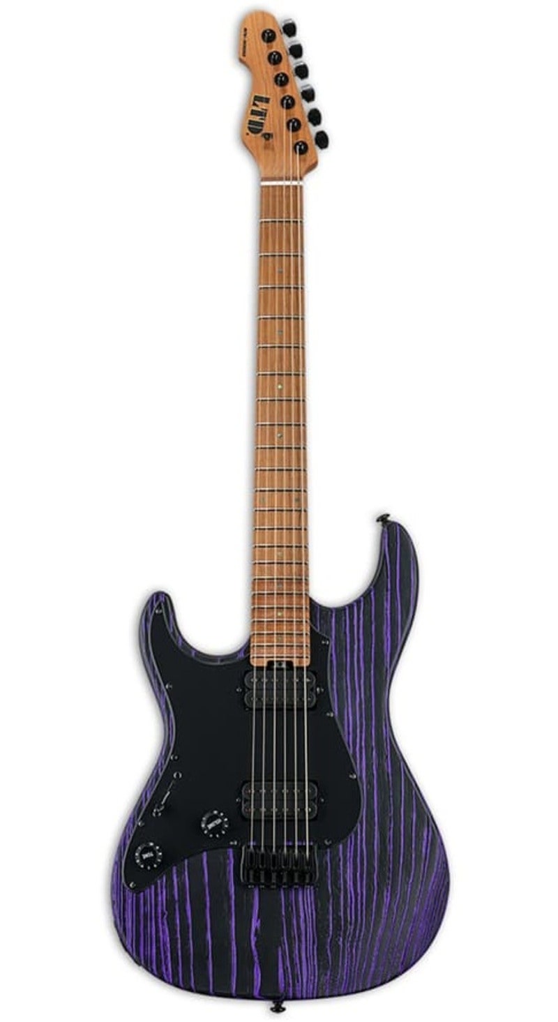 Tuotenumero 1074442LTD SN-1000HT Left Handed Purple Blast on vasenkätinen sähkökitara swamp ash -rungolla ja Seymour Duncan Sentient/Pegasus -mikityksellä. Nopea ja tarkka soitin moderniin rockiin ja metalliin.
