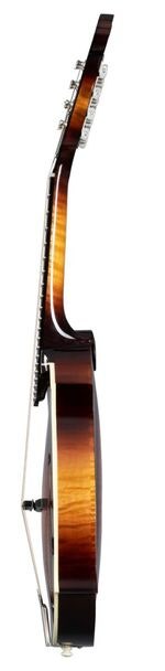This mandolin features a hand-carved Sitka spruce top paired with a two-piece quarter-sawn figured red maple back and flat-sawn figured red maple sides. The figured red maple neck with a wide profile ensures comfort and stability. The multi-ply celluloid nitrate binding and Dark Burst nitrocellulose lacquer finish combine to give the instrument a refined, elegant look with a classic touch.