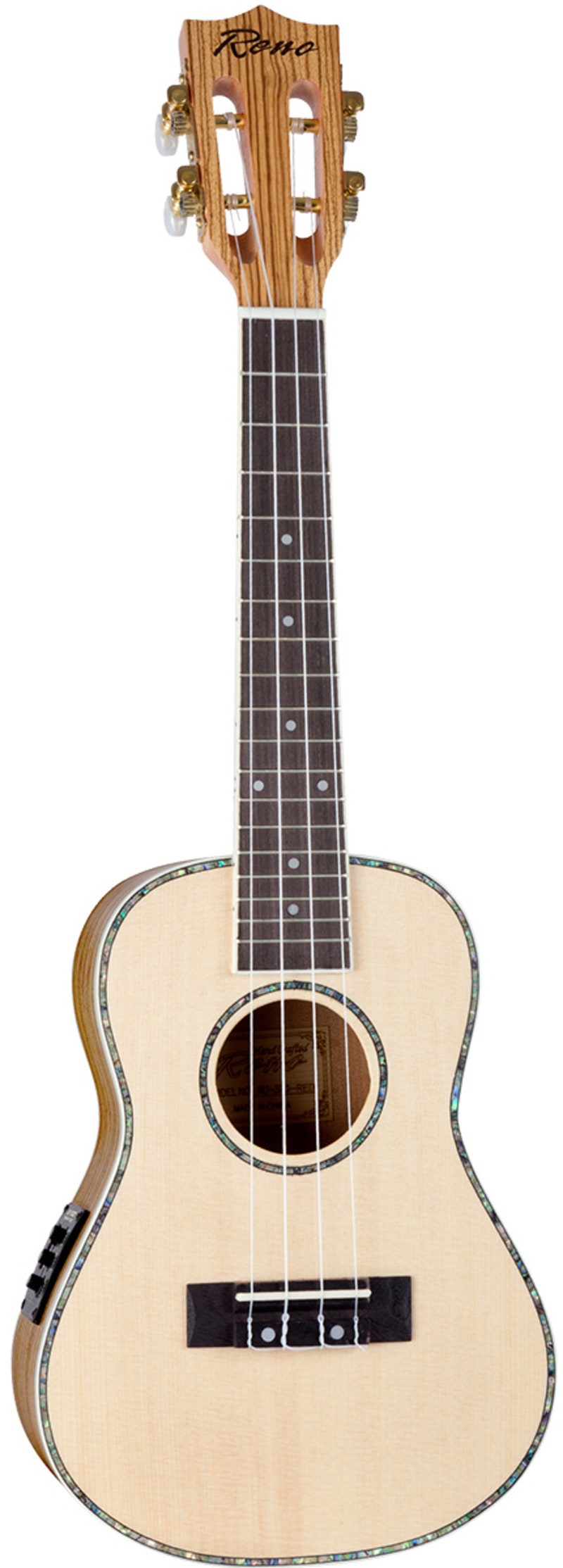 Tuotenumero 1051308Reno RU320E on 18-nauhainen, Belcat EQ-elektroniikalla varustettu Grand Concert-ukulele, jossa on täyspuinen kuusikansi ja zebrasivut ja -pohja. Loistavasoundinen ja näyttävä laatu-ukulele.