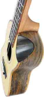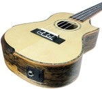 Grand Concert ukulele käsinojalla, sekä soololovella. Täyspuinen kuusikansi, Caidie-pohja ja -sivut. Belcat EQ-elektroniikka.