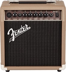 Fender Acoustasonic 15 tarjoaa 15W tehoa, kaksi kanavaa (kitara + mikki), chorus-efektin ja kuulokelähdön....