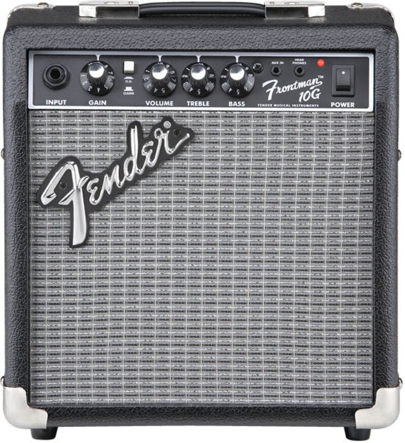For the beginning electric guitarist or anyone who wants a small, easy-to-use practice amp with quality tone and a great price, the Frontman 10G is at your service. Conveniently compact and built with classic Fender style, it delivers full sound from its 6" speaker, with a gain control and overdrive switch that rock guitar tones from tube-emulated overdrive to full-strength ultra-saturated distortion—perfect for blues, metal and famous Fender clean tone.
