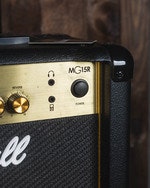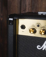 Tuotenumero 1092697Guitar combo, 15 W, 8" speaker, 2 channels, 3-band EQ, headphone out, aux input, 7.6 kg, black/gold