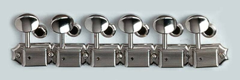 Package includes six plated steel tuning machines, bushings, and mounting screws.
