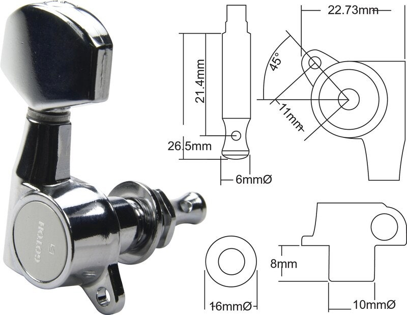 Tuotenumero 1023682Kitaran virityskoneisto, 3 vasen, 3 oikea. Kromattu.
