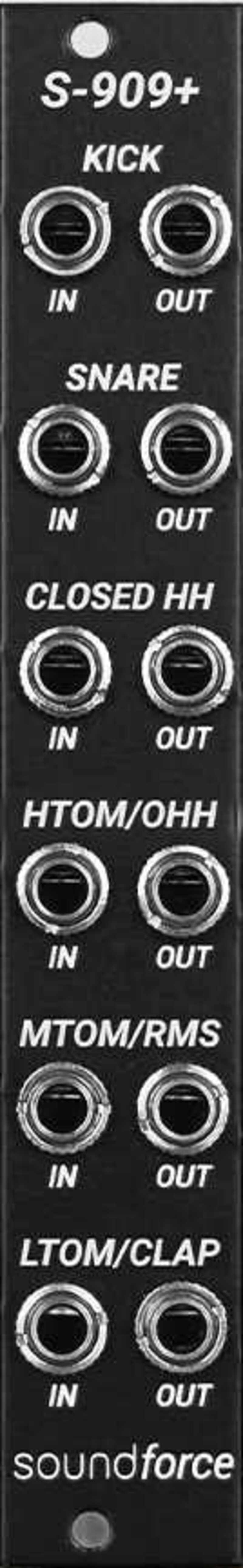SoundForce S-909+ on kompakti 4HP rumpumoduuli, joka tarjoaa kuusi ikonista TR-909-soundia Eurorack-käyttöön. Moduuli yhdistää autenttisen analogisoundin moderniin modulaariseen muotoon, ja mukana on myös valikoituja perkussioääniä monipuolista rytmityöskentelyä varten.