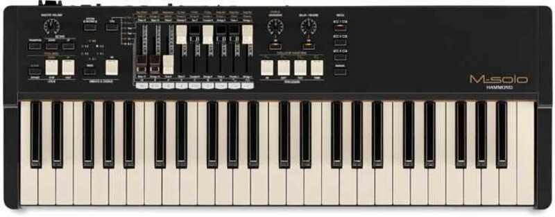 Lisäksi M-Solossa on kolme autenttista vintage Combo Organ -mallinnusta, 70-luvun jousi-ensemble sekä analogityylinen polyfoninen syntetisaattori kahdella oskillaattorilla. Näitä erityisääniä hallitaan kätevästi drawbar-säätimillä.