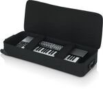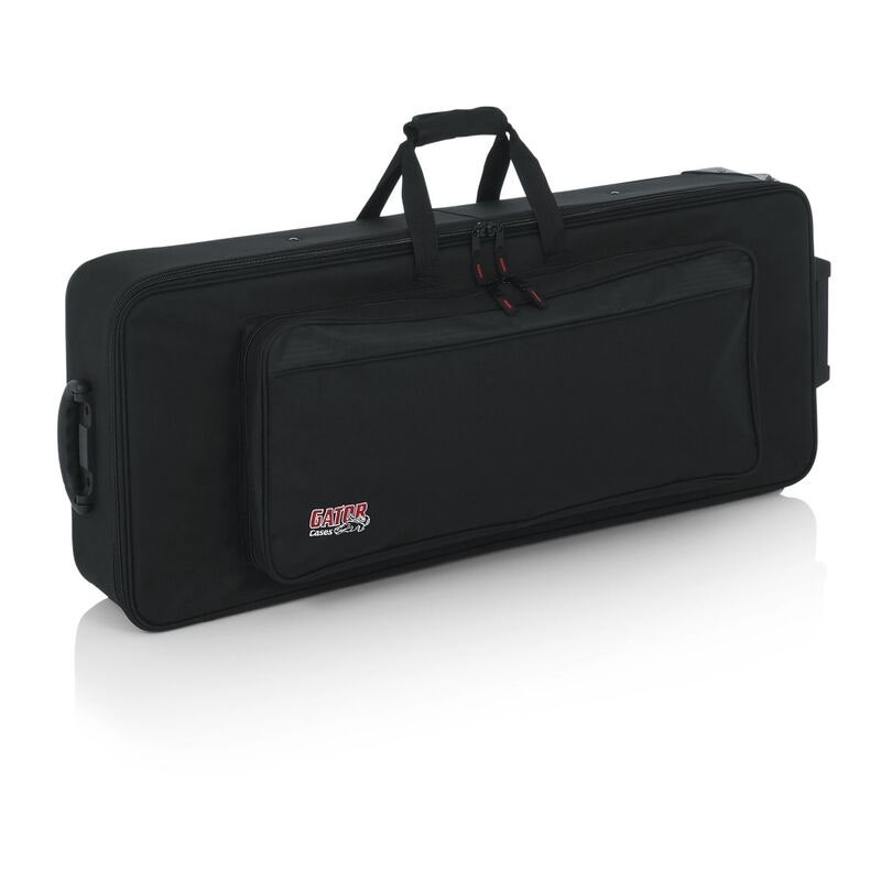 The GK-49 is a lightweight yet sturdy keyboard case designed to protect 49-key keyboards during transport. It features a durable nylon exterior with an interior frame reinforced by polyethylene. Inside, the case is lined with soft foam and tricot fabric, while adjustable padded straps secure the instrument in place during movement.