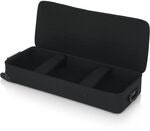 Multiple external compartments provide space for accessories like cables and pedals. Built-in wheels, a tow handle, and skid bars make the case easy to move, whether on short trips or extended travel.