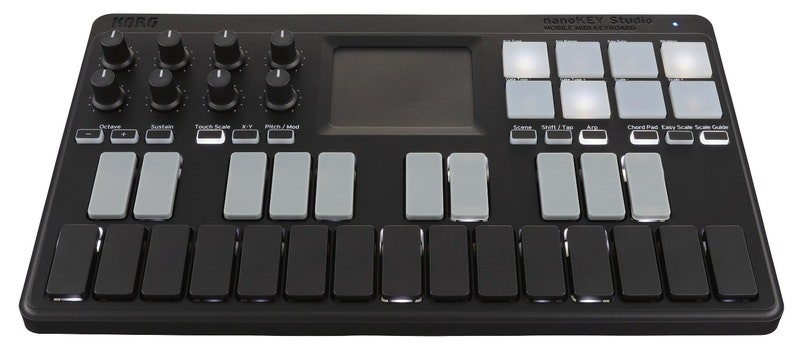 Tuotenumero 1048405Kompakti MIDI-koskettimisto, joka yhdistyy USB:lla tai langattomasti Bluetoothilla. nanoKEY Studio tarjoaa koskettimiston, potikoita, pädejä, sekä kosketuspinnan, jonka avulla voit hetkessä muuntaa inspiraation ääneksi. Se on paristokäyttöinen ja voidaan liittää myös langattomasti iPhoneen, iPadiin tai Mac/Windows -koneisiin. Se on kompakti ja mobiili MIDI-koskettimisto, jota on helppo kuljettaa ja helppo käyttää milloin ja missä tahansa.