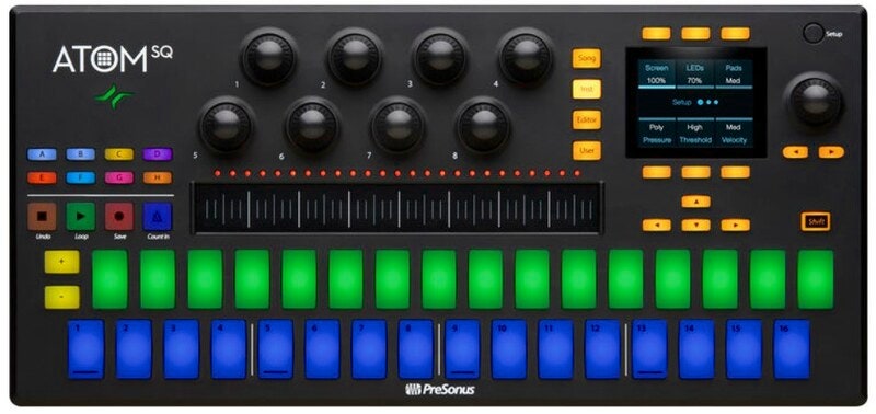 Tuotenumero 1066383Presonus Atom SQ on hybridimallinen MIDI-ohjain, jossa on 32 RGB-padia, arpeggiaattori, Studio One- ja Ableton-yhteensopivuus sekä monipuoliset säätimet tuotantoon ja livekäyttöön.