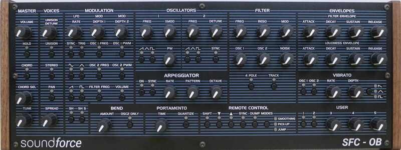 Tuotenumero 1091418SoundForce SFC-OB on USB-MIDI-ohjain OB-tyylisille softasyntetisaattoreille, kuten OP-Xa V ja OB-X. Se tarjoaa fyysisen käyttöliittymän 37 potikalla ja 41 kytkimellä, tarkan plugin-yhteensopivuuden ja laadukkaan boutique-rakenteen.