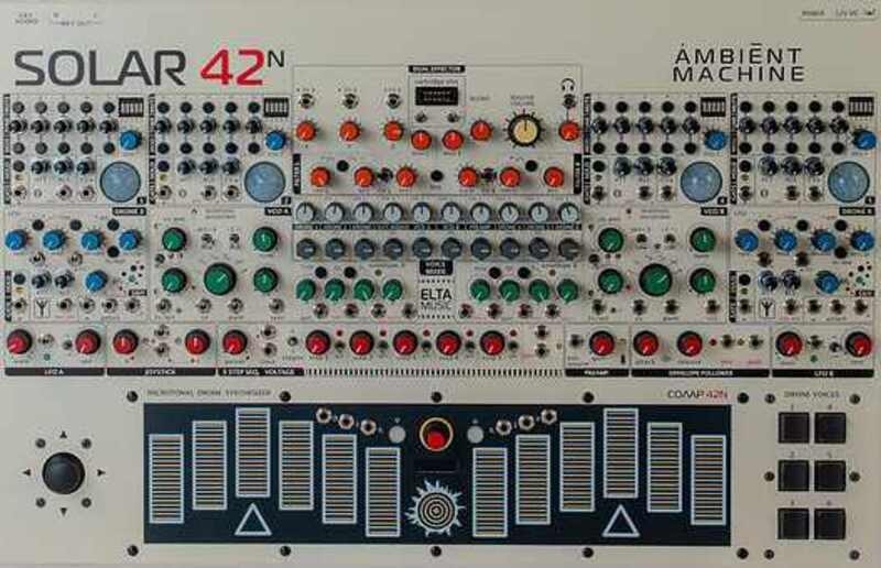 Tuotenumero 1085053SOLAR 42 on ainutlaatuinen analoginen ambient-drone-syntetisaattori, joka inspiroi ja auttaa sinua löytämään uuden ja spontaanin lähestymistavan musiikin luomiseen