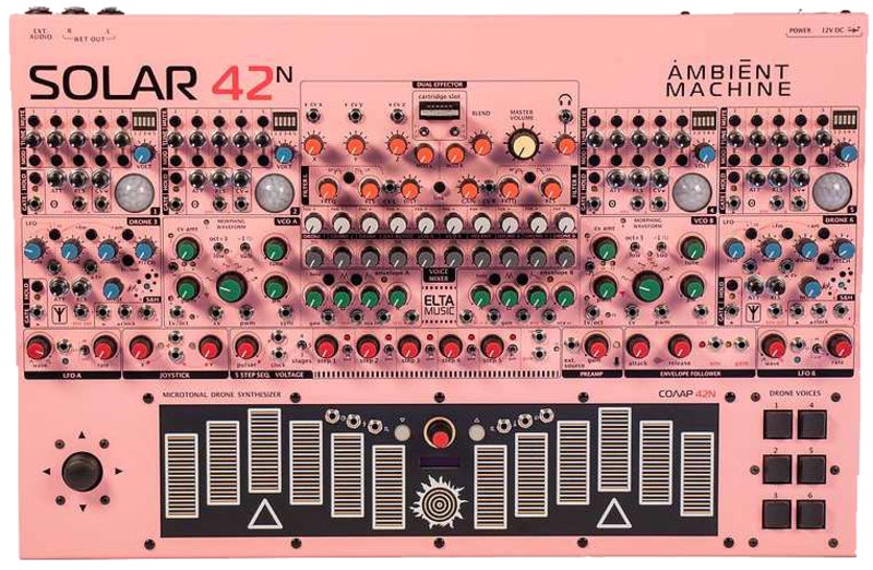 Tuotenumero 1085055SOLAR 42 on ainutlaatuinen analoginen ambient-drone-syntetisaattori, joka inspiroi ja auttaa sinua löytämään uuden ja spontaanin lähestymistavan musiikin luomiseen