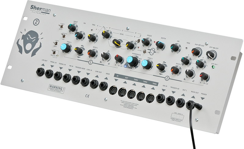 The Sherman Filterbank 2 is a musical instrument in clear differentiation from the simple sound shaping of an "ordinary" filter. With two very complex filters that can be used in parallel or serial mode, LFO, envelopes, rich distortion and various modular linking options, Filterbank 2 can generate a rich beat from the simple noise of a loose cable. The device is the right answer for unlimited sound shaping applications once you understand it. In an unusual housing and with a remarkably clear manual, the Filterbank 2 is unexpectedly functional and also extremely beautiful.