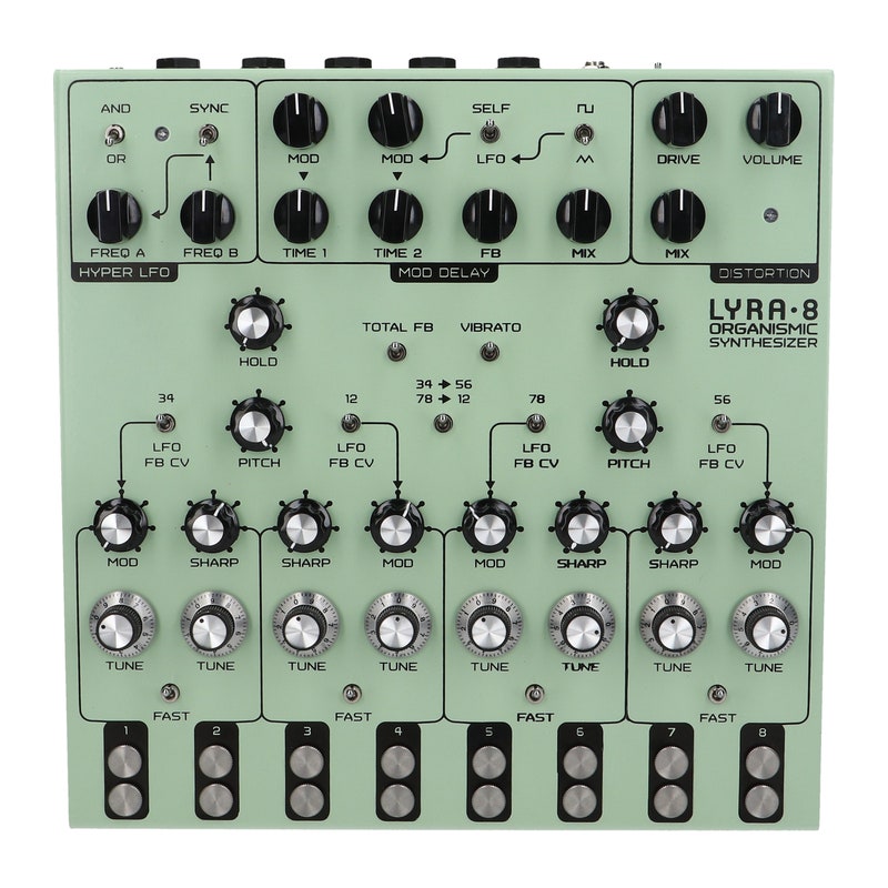 LYRA-8 on ainutlaatuinen, inspiroiva ja ilmaisuvoimainen analoginen drone-syntetisaattori, jossa on erittäin orgaaninen sointi. Syntetisaattorissa on kahdeksan oskillaattoria, joita voidaan käyttää erikseen tai pinota yhdessä FM-ääniin.