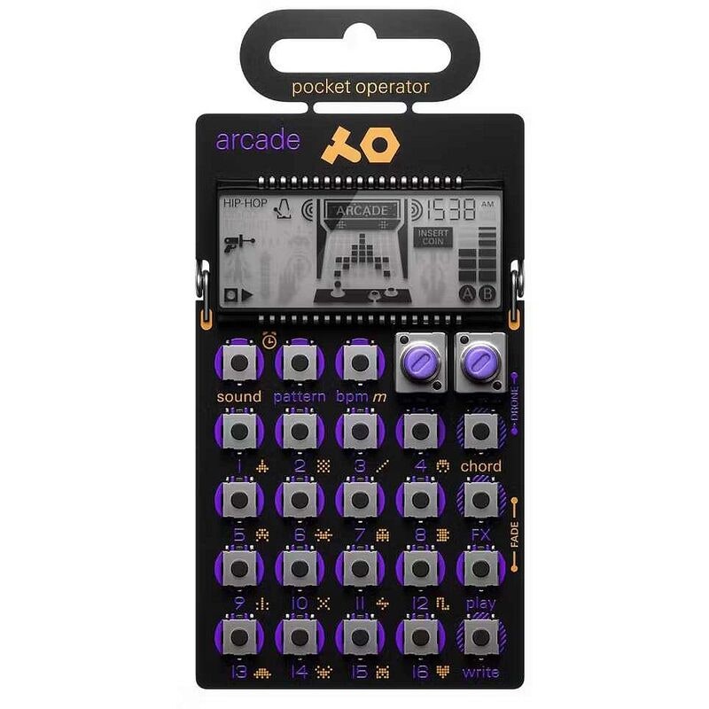 The Teenage Engineering PO-20 Arcade is a pocket-sized chiptune synthesizer and sequencer designed for fast beat creation, retro-inspired arcade sounds and creative live performance. With 16 sounds, 16 punch-in effects, step multiplier and parameter locks, it provides deep sequencing capabilities in a highly portable format. Extensive pattern and chord chaining allow the creation of long, structured arrangements directly on the device.