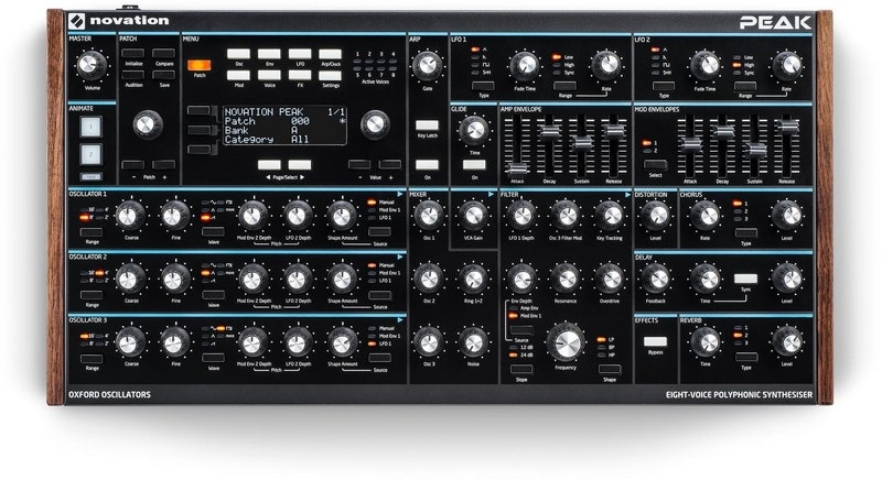 Tuotenumero 1054321Novation Peak on kahdeksan äänen polyfoninen syntetisaattori, jossa joka äänelle on kolme New Oxford -oskillaattoria.