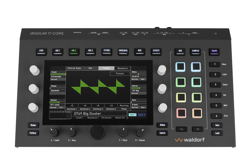 Iridium Core provides the core synthesis engine of the Quantum / Iridium platform. It is the heart of Waldorf’s most advanced hardware-based synthesis. The essence of forward-looking sound.