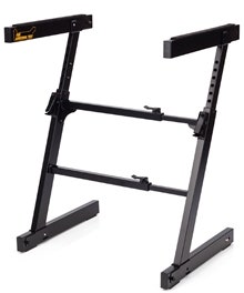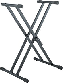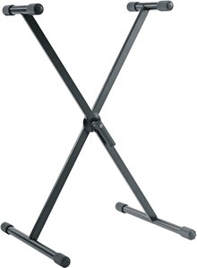 Edullinen, mutta tukeva X-teline kosketinsoittimille. Neljäportaisen korkeudensäätömekanismin avulla löydät oikean soittokorkeuden helposti ja nopeasti. Säädettävä kumiset putkien päädyt mukautuvat tukevasti epätasaisille alustoille.