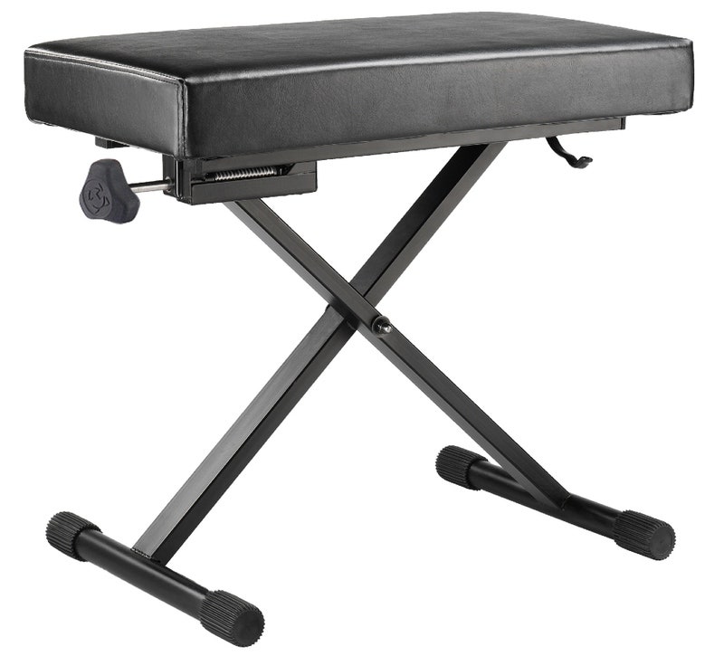 Kosketinsoitinpenkki, neljäportainen EZ-Height-korkeudensäätömekanismi ja Micro-adjuster-hienosäätömekanismi takaavat, että soittoasentosi on aina oikea. Säädettävät kumijalat asettuvat tiukasti lattiaa vasten myös hieman epätasaisemmalla pinnalla.