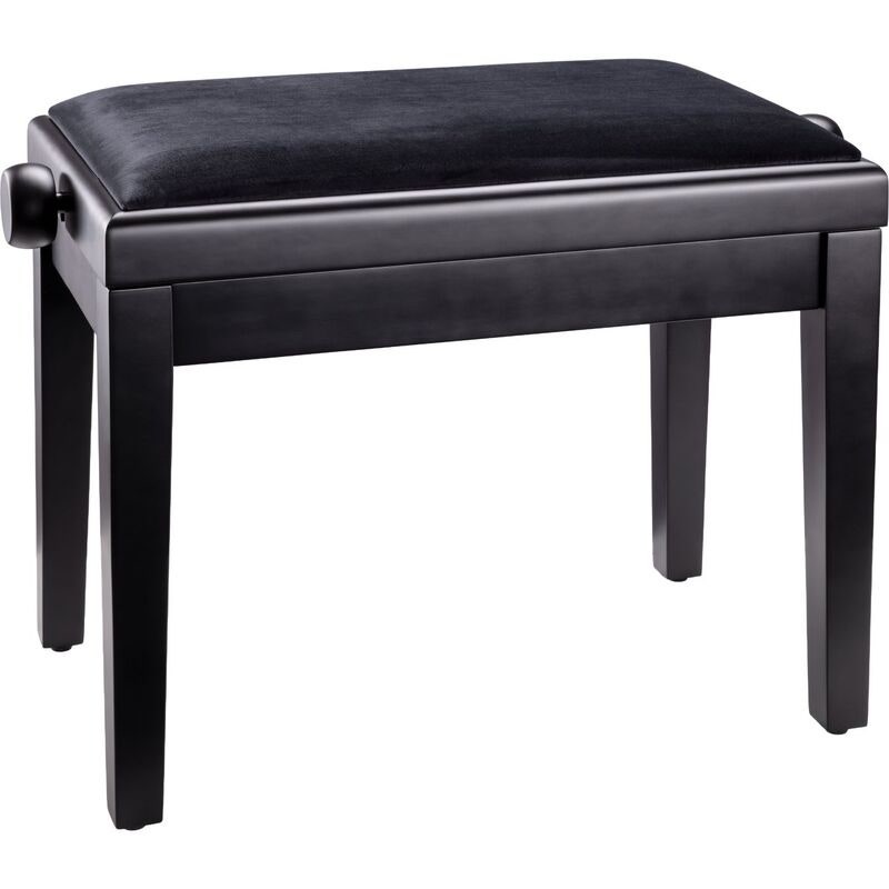 Tämä klassinen pianopenkki on valmistettu massiivipuusta, viimeistelty mattamustaksi ja verhoiltu mustalla samettikankaalla. Korkealaatuisista materiaaleista ja nykyaikaisella tekniikalla valmistetun penkin korkeutta voidaan säätää helposti, jotta soittajalle saadaan ihanteellinen istuma-asento.