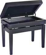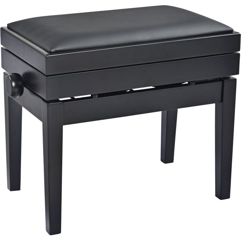 Tämä klassinen pianopenkki on valmistettu massiivipuusta, viimeistelty mattamustaksi ja tuolin istuinosa on verhoiltu mustalla keinonahkalla. Tuolin istuinosaan on integroitu kätevä nuottien säilytystila. Korkealaatuisista materiaaleista ja nykyaikaisella tekniikalla valmistetun penkin korkeutta voidaan säätää helposti, jotta soittajalle saadaan ihanteellinen istuma-asento.