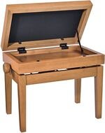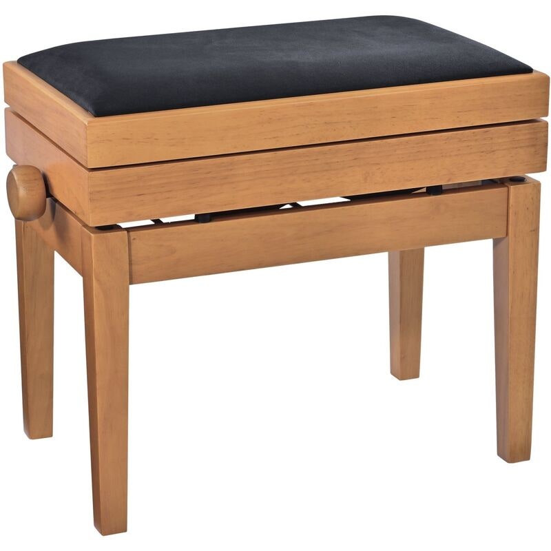 Tämä klassinen pianopenkki on valmistettu massiivipuusta, matta-natural-viimeistelty ja tuolin istuinosa on verhoiltu mustalla samettikankaalla. Tuolin istuinosaan on integroitu kätevä nuottien säilytystila. Korkealaatuisista materiaaleista ja nykyaikaisella tekniikalla valmistetun penkin korkeutta voidaan säätää helposti, jotta soittajalle saadaan ihanteellinen istuma-asento.