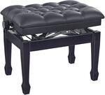 Kenties markkinoiden miellyttävin pianopenkki, joka on varustettu tehokkailla pneumaattisilla kaasujousilla ja normaalia suuremmalla istuinosalla. Portaattomasti säädettävän korkeuden ansiosta penkki on ihanteellinen myös oppilaitoskäyttöön. Korkeakiiltoinen musta viimeistely ja niiteillä koristeltu musta keinonahkaverhoilu antavat tuolille elegantin ulkonäön. Säätöjalkojen ansiosta tuoli pysyy tukevasti paikallaan myös hieman epätasaisemmilla alustoilla.