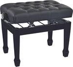 Elegantti ja todella tyylikäs pianopenkki, jonka istumakorkeus on säädettävissä tarkasti ja helposti. Portaattomasti säädettävän korkeuden ansiosta penkki on ihanteellinen myös oppilaitoskäyttöön. Korkeakiiltoinen musta viimeistely ja niiteillä koristeltu musta keinonahkaverhoilu antavat tuolille elegantin ulkonäön. Säätöjalkojen ansiosta tuoli pysyy tukevasti paikallaan myös hieman epätasaisemmilla alustoilla.
