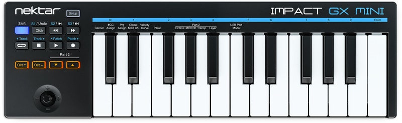 Impact GX Mini fits the power of Nektar’s acclaimed Impact GX range of USB MIDI controller keyboards into your backpack: 25 mini keys with velocity, Joystick for modulation control and even Nektar DAW integration for most popular DAWs. Our unique Part 2 feature adds momentary transpose, layering and more. Impact GX Mini helps capture your ideas no matter where inspiration strikes!