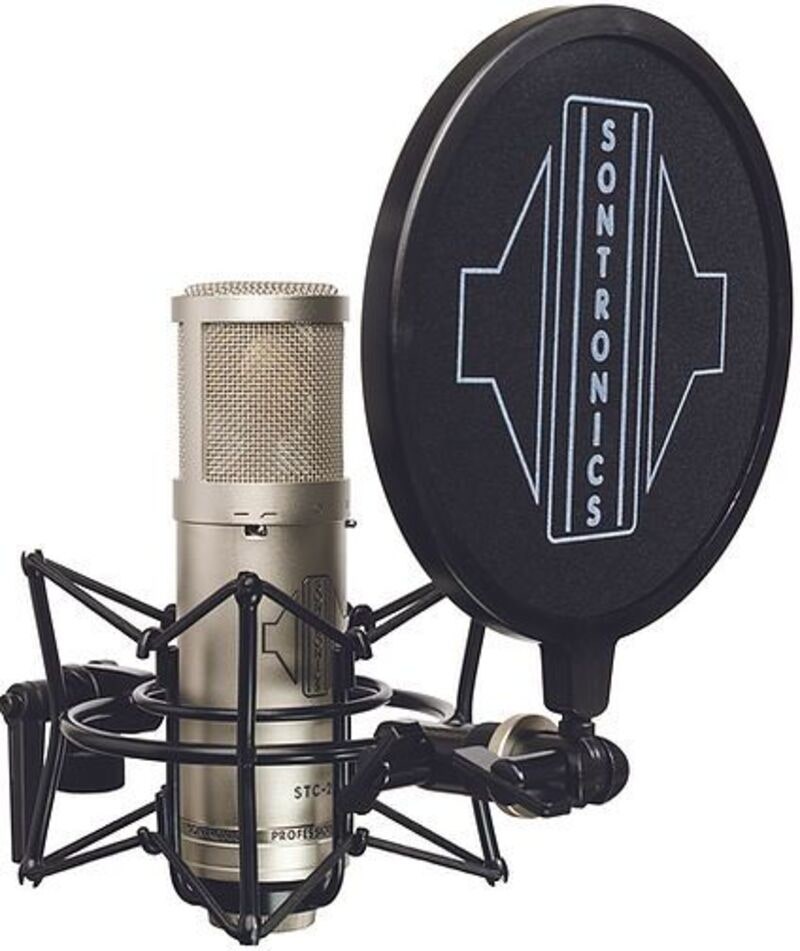 Tuotenumero 1082889Sontronics mikrofonipaketti, joka sisältää STC-2-mikrofonin, kehtopidikkeen, pop-filtterin, XLR-kaapelin (3 m) ja säilytyspussin