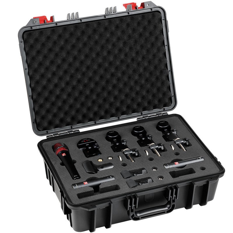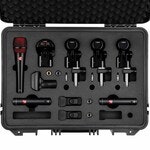 Tuotenumero 1091277V PACK Arena Black pitää sisällään seitsemän palkittua sE Electronics rumpumikrofonia, pidikkeet sekä kuljetuslaukun. V PACK Arena Black-setillä loihdit upean soundin koko rumpusetillesi
