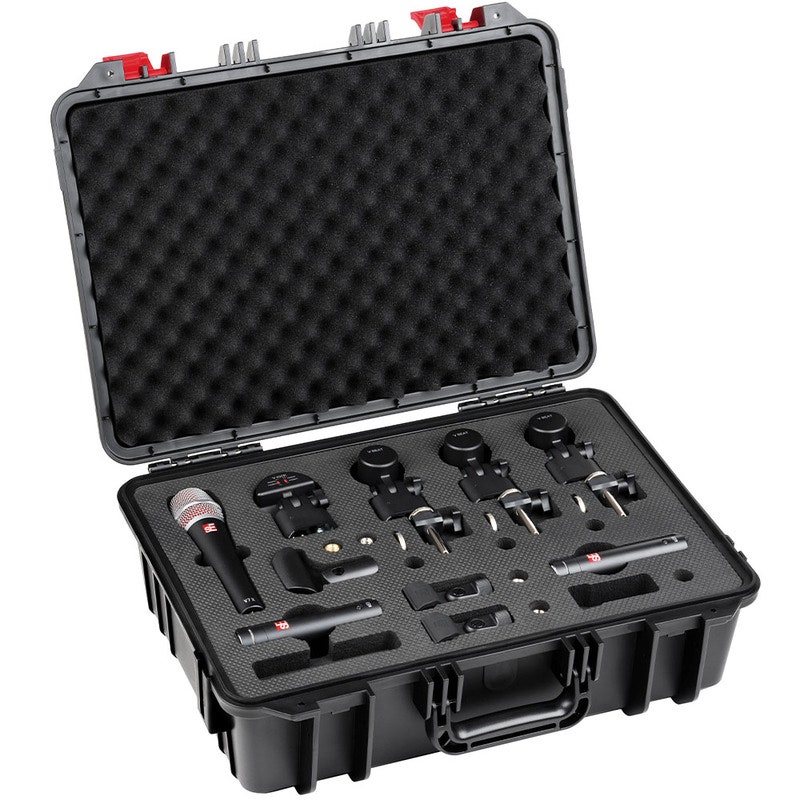 Tuotenumero 1063457V PACK Arena pitää sisällään seitsemän palkittua sE Electronics rumpumikrofonia, pidikkeet sekä kuljetuslaukun. V PACK Arena-setillä loihdit upean soundin koko rumpusetillesi