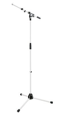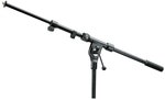 Puomillinen mikrofoniteline, jossa lyhyet taitettavat jalat ja kaksiosainen teleskooppipuomi