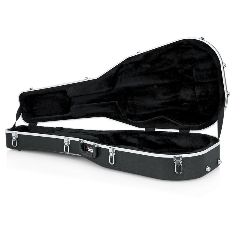 A hard-shell case designed for classical guitars, made from impact-resistant ABS plastic to withstand transport-related stress. The interior features an EPS foam core with a soft plush lining that protects the instrument from scratches and impacts. The case also includes an internal compartment for accessories such as strings, capos, and picks.