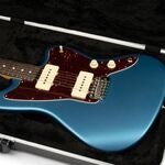 Molded hard case designed for right- and left-handed Jazzmaster guitars