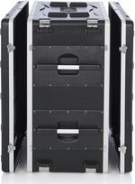 The case is made from molded polyethylene and features rubber shock absorbers in all four corners. This design reduces vibrations and impact. Ventilation openings around the entire rack area support effective cooling of installed gear.