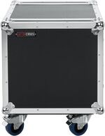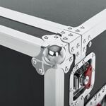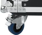 The case has four fixed 4-inch casters, two of which are locking to secure the rack in place. The recessed, spring-loaded rubber-grip handles facilitate carrying and handling while protecting the case during transport.